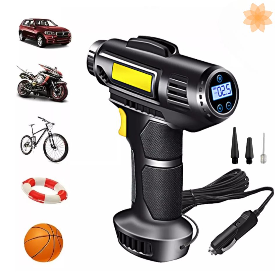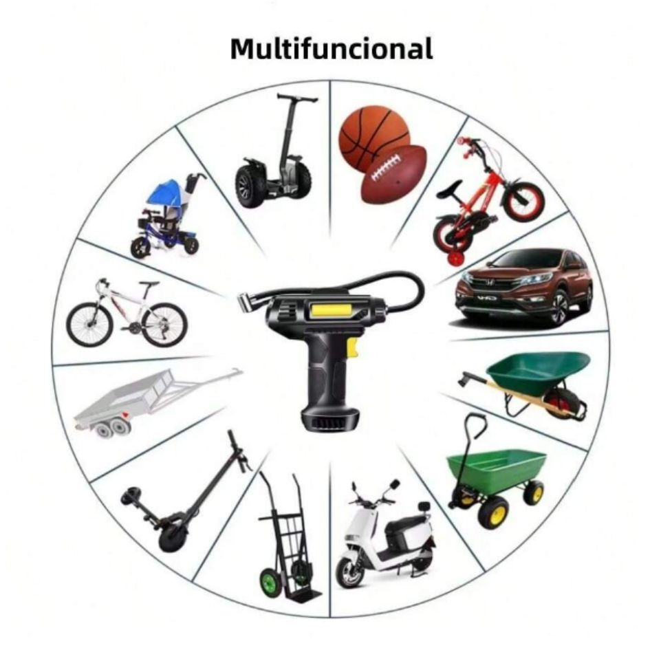 Compresor Inflador Led Automático Atención:Este producto necesita ser conectado al encendedor del coche para su uso, no hay batería, debe ser conectado a la fuente de alimentación del coche para su uso. *Inflado rápido: Hasta 100 PSI, infla un neumático 195/65r15 de 0 a 35 PSI en 3 - 5 minutos.Este modelo hace más fácil y cómodo inflar un neumático en caso de emergencia y es muy práctico en caso de emergencia en el coche.*Apagado automático: Cuando el neumático de su coche alcance la presión necesaria, se apagará automáticamente. Los excelentes infladores de neumáticos mantienen su coche seguro en todas las carreteras. No tendrá que preocuparse por el exceso de inflado o la baja presión de los neumáticos.*Pantalla digital e iluminación LED: El compresor de aire portátil tiene una pantalla grande, muy precisa y brillante que le ayuda a calcular los valores de Psi, bar, kPa, kg/el CM que necesita.El inflador de neumáticos digital viene con luces LED brillantes y duraderas que son fáciles de usar incluso en la oscuridad, lo que le permite ver con claridad al inflar por la noche o para arreglos rápidos en carreteras rurales oscuras y remotas.*Amplia gama de aplicaciones: Un inflador de neumáticos de coche puede inflar fácilmente hasta cuatro neumáticos. Infla cualquier válvula Schrader de coches, todoterrenos, motos y bicicletas; incluye accesorios como globos de presión, colchones de aire, cojines, globos y colchonetas.*Portátil y ocupa poco espacio: El inflador de neumáticos con cable de alimentación oculto es fácil de guardar y no ocupa espacio. Los infladores de neumáticos portátiles para coche son compactos y fáciles de levantar. El compresor de mano se coloca cómodamente en el coche y está siempre listo para usar. Incluye:1 Compresor Inflador Led y Accesorios