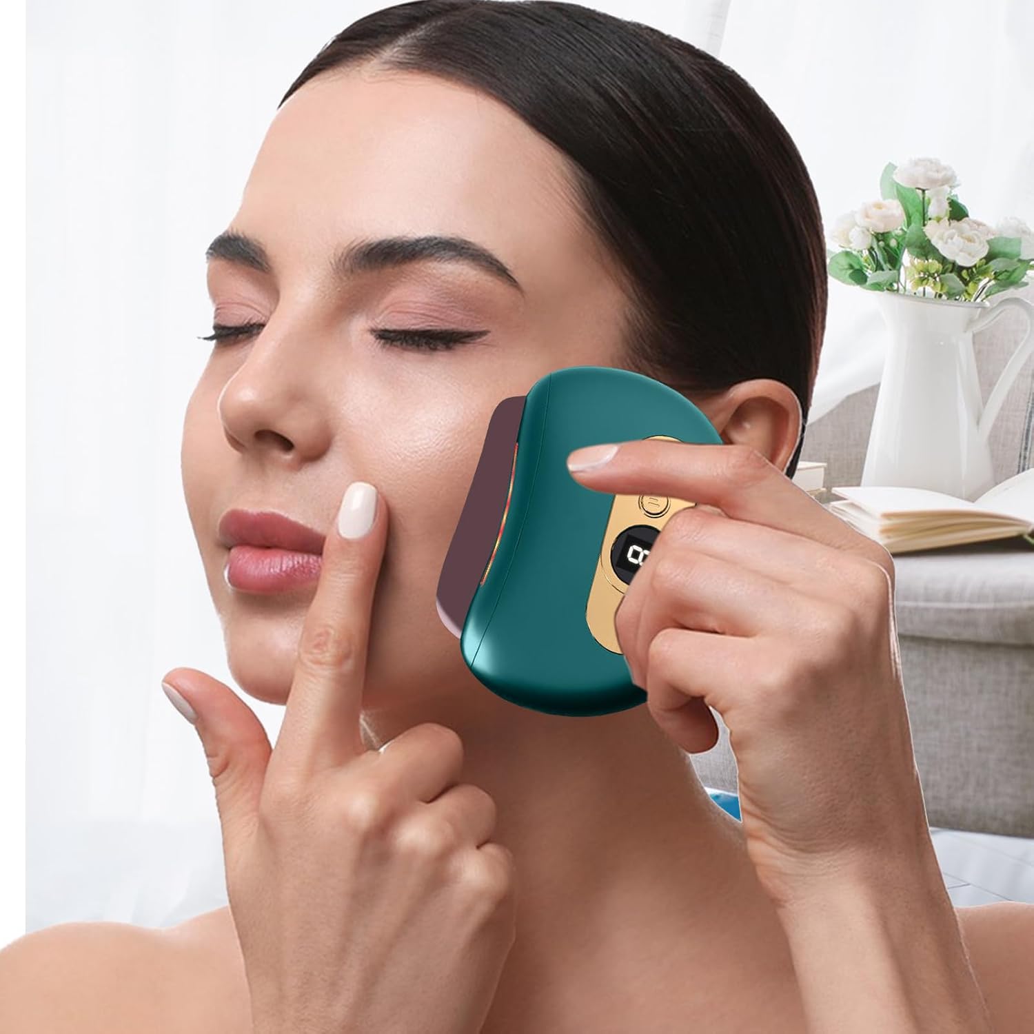Temperatura de 9 engranajes: el masajeador eléctrico gua sha puede mantener la piel agradable a temperatura constante, liberar oligoelementos y puede mejorar su piel.