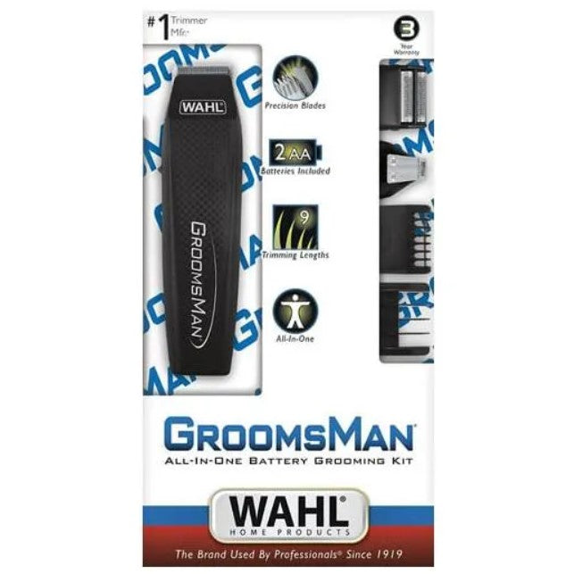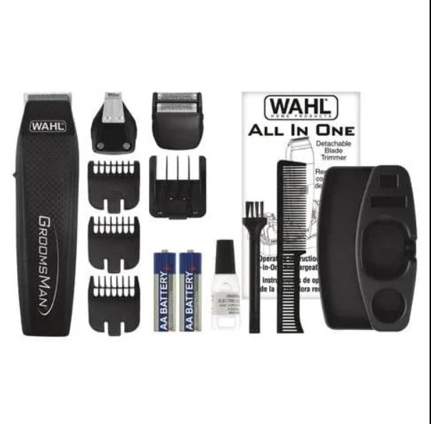 Usos recomendados para productoBarba y bigote, nariz, cabello, cuerpoPeso del producto12,8 OnzasMarcaWahlFuente de energíaRecargableMaterialAcero inoxidableCaracterística especialuso por bateríaDimensiones del artículo Largo x ancho x alto5,8 x 17,4 x 27,9 centimetersMaterial de la cuchillaAcero inoxidableAudiencia objetivoHombres¿Requiere baterías?NoUn retoque semanal no estaría nada mal, pero si no tienes tiempo para acudir a la peluquería, te sorprenderá lo fácil que es cortar el cabello en casa con la Wahl Groomsman All In One HOJAS AUTOAFILABLES Olvídate de sufrir de perder el filo en las navajas y de no lograr tus cortes favoritos con la Wahl Groomsman All In One es todo lo que necesita para lograr y mantener su apariencia. Es ideal para estilos cortos y retoques en patillas y escotes. EL EQUIPO MÁS COMPLETO El Kit consta de una cortadora inalámbrica y una recortadora pequeña que funciona con pilas; ambas con sus respectivos peines y guías, con los que obtendrás 11 posiciones fijas de largo. Con este juego de peluquería Wahl ya no tendrás pretexto para no estar a la línea.La solución perfecta para mantener tu vello facial perfectamente recortadoCompacto y ligero para un fácil transporteLa guía de seis posiciones permite detalles y bordesLas cuchillas de acero de alto carbono están molidas con precisión para permanecer afiladas durante másIdeal para viajes