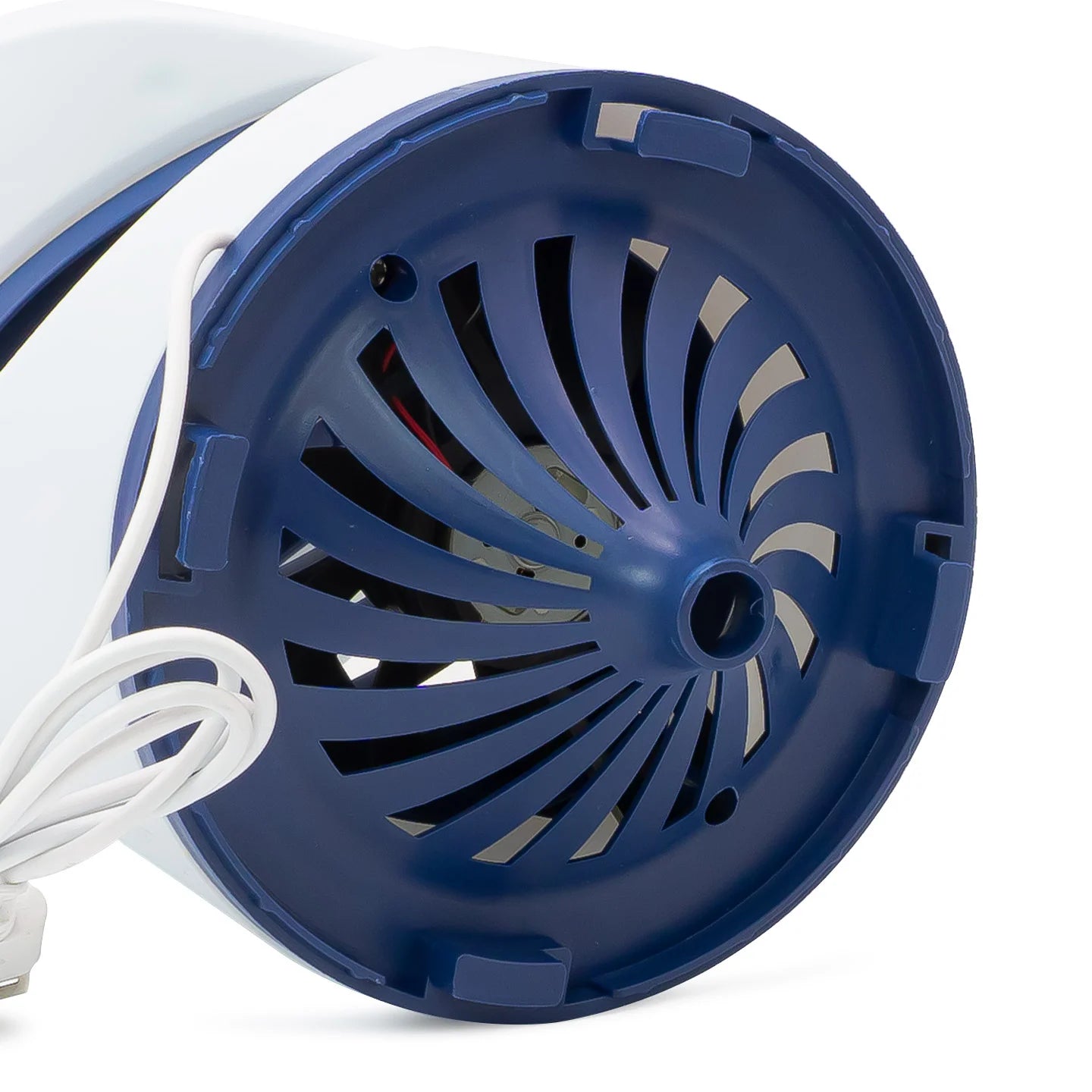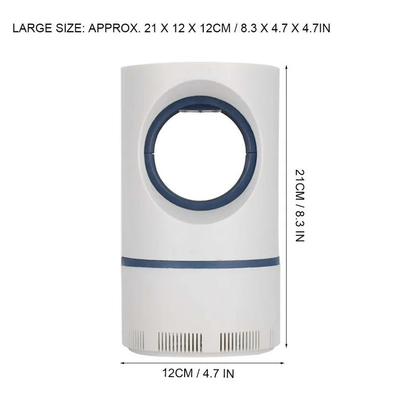 TRAMPA LAMPARA LED LUZ UV MATA MOSQUITOS Facil y practico de usar. Esta trampa de mosquitos los atrae con su luz ultravioleta UV para después succionarlos con el ventilador que incluye y atraparlos en su trampa. El ventilador en la trampa para mosquitos los chupa, con la jaula a prueba de fugas combinada. Es ligero y no libera ningún mal olor, humos peligrosos o sustancias letales en tu entorno vital. Ideal para proteger a los niños y adultos de los riesgos de los mosquitos. Seguro para humanos y mascotas. Fácil uso: sólo conecta a una entrada USB. Al instante se encenderá la luz UV y el ventilador. El ventilador genera ruido ligero que puede aminorarse colocando el equipo de manera vertical u horizontal sin afectar su funcionamiento.También puede atraer a otros insectos voladores. Se recomienda limpiarlo una vez cada 2-4 semanas para evitar que los mosquitos se escapen, la parte inferior de la bandeja se puede quitar sin esfuerzo para limpiar, simplemente gira la bandeja inferior y límpiala con un cepillo o enjuágalo con agua tibia. Caracteristicas:- Seguro y duradero.- Fácil y practico de usar.- Moderno y silencioso, perfecto para la noche.- Sistema de atracción por luz. -Rápido y eficaz -Comodo para uso nocturno- Ahorra energía y dinero.